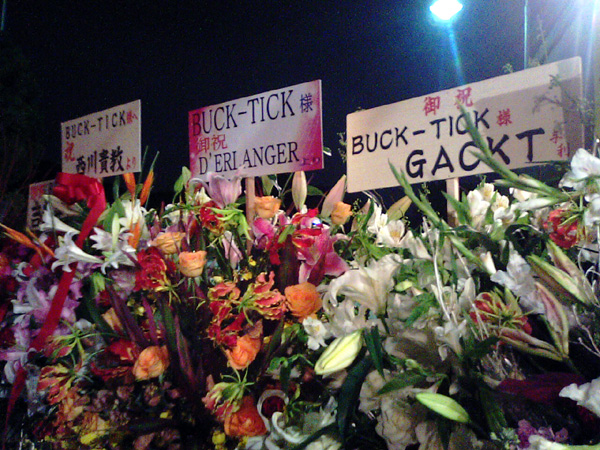 BUCK-TICK@武道館 BUCK-TICK「THE DAY IN QUESTION」2009年12月29日 日本武道館今年も行って来ちゃいました。最新アルバムとか聴いてないけど、いいのかな?とか思いつつ。w本当はツアーも気になってたんですけど、金欠だから我慢しました。GLAYの武道館は昔、1回行ったきりなので、もう武道館にはBUCK-TICKじゃないと来れないような気がする。w座席は今年も2階席で、去年とあまり変わらない位置でした。イープラスで取るとこの辺りになるのかしら?w今年もあっちゃんの美声に酔いしれることが出来て幸せです。そしてユータさんが相変わらず、お茶目っぷりを発揮してました。か、かわゆい。(*´Д`*)帰りにお花を見つけて写メしちゃいました。w流石、GLAY兄さん!これからも交流を続けて欲しいな。他にも色々と来てましたよ。ところで、気付けば1ヶ月ぶりのBLOG更新になってしまいました。しかももう12月も終わってしまう。wホント、亀更新ですいません。 [0回]PR