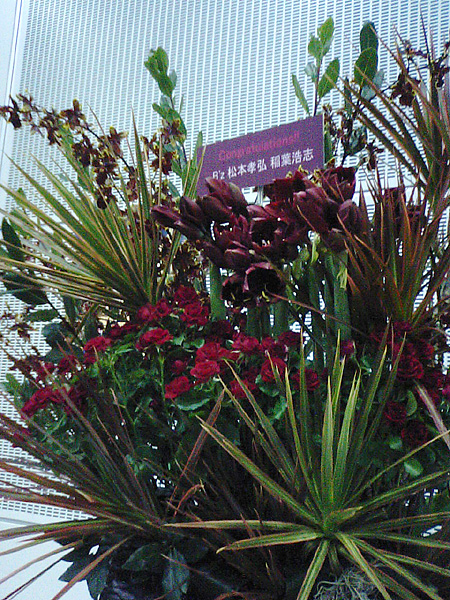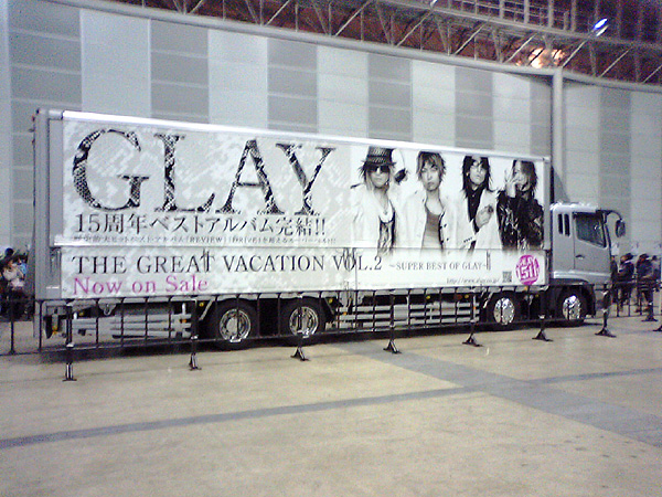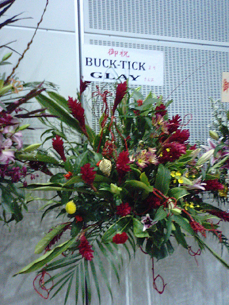 GLAY@幕張メッセ GLAY ARENA TOUR 2009THE GREAT VACATION2009年12月30日 幕張メッセ国際展示場9・10・11ホール夏の日産以来のGLAYライブに行ってきました。ちなみに今回はグッズは何も買ってません。マジで生活苦しいんで(汗今年は愚麗神社がグッズ売場の近くに設置されてて、凄い人だったから、ちょっと写真は諦めました。その代わり、会場内に入るとツアートラックと沢山のお花が来ていたのでそれをパシャリ。いつもは撮影駄目って言われるのに、この日はOKだったっぽい。B'zから来てました〜♪てか、ここだけ人盛りが凄かったんですけど。wまぁ、大物ですからね、キモチは分かります(花自体も結構デカかったし)それから前日に観て来たBUCK-TICKさんからも♪両バンド20年以上続いてるビッグバンドですから、GLAYさんもココを目指して頑張って欲しいです。他にもいっぱい来てたんですけど載せきれないんで、mixiのフォトアルバムにでもUPしておきます。入口の方に進んでいくと、今日の座席表が…。ちなみに私の今日の座席はA5ブロック!!前から13列目。去年よりも近い!しかも尚側!!ありがとう〜ホントにありがと〜!HAPPY SWING!!私の記憶が正しければ、こんなに近い座席は、2002/8/25 横浜アリーナ(センター8列目)以来じゃないでしょうか。2006/2/3のZepp Tokyoでも頑張って前の方で観てましたけど。ちなみに幕張メッセはいつもブロック指定の立見だったのに、今年から全席指定席に変わってしまったんですが…やっぱ椅子が有った方が楽だわと思った。w荷物置けるし、踏まれないし、ギュウギュウじゃないから視界も良いし。って事でこの日の座席はかなり良席でした♪それではLIVE本編へ。01.BLACK EYES SHE HAD02.absolute "ZERO"03.VERBオープニングは少しシックなロックナンバーでスタート。その後はGLAYらしくハードなナンバーが続きます。ところでHISASHI兄さんの髪型が、いつもの金黒のサラサラヘアーに"ちょんまげ"がちょこんと付いてて可愛かったんですよ。HISASHI兄さんが動く度にぴよんぴよん動くのですよ。ただ、眉毛が無かったのですよ。orz<MC>TERU「忙しい中、来てくれてありがとう。 30日っていったら、普通、大掃除の日だよ!」04.FAME IS DEAD05.198806.ごらん、世界は苦しみに満ちているよ<MC>TERU「感謝の気持ちを込めてこの曲を歌います」07.SPECIAL THANKS08.RainbirD09.HOWEVERちょっと、まったりムード突入。HOWEVERはちょっとアレンジされてて素敵でした。<MC>TERU「HOWEVERも何百回って歌って来たけど、 その時の感情や状況にしか歌えない、聴けない曲ってあるんだよね」あぁ、まさに今の自分がそんな状況だって思いました。去年の状況と今の状況は全然違う。だから同じ曲でも心への伝わり方って全然違くて…。今は言葉のひとつひとつが身に染みる…そんなカンジです。10.NO ESCAPE11.AMERICAN INNOVATION12.VIVA VIVA VIVA13.出逢ってしまった2人14.Winter, againうおぉ〜「出逢ってしまった2人」とかいって懐かしすぎる〜!しかも「出逢ってしまった2人」「Winter, again」はアレンジされてて、ちょっと音源欲しいとか思っちゃいましたよ。15.春を愛する人後半、一瞬だけ歌詞が飛んでしまい、「あ!」って表情のTERUさんが可愛かった。w16.とまどい後半、突然TERUさんの声が出なくなってしまう。本人が一番ビックリしてたと思うんだ。最後まで頑張って歌おうとするんだけど、やっぱ無理っぽくて、途中で会場のみんなにバトンタッチの仕草。だから会場のみんなで歌いました。TAKUROさんもコーラスパート歌いながら、みんなを引っ張ってくれて。後のMCで言ってたけど、突然声が出なくなってしまう事は初めてじゃないらしくて、でもその時は凄く悔しくてステージを降りてしまいたかったけど、でも今日は、みんなが大丈夫だって表情をしてくれたから、ステージを降りたいと思わなかったって…。TERUさんが歌えなくなっちゃった時は、いつだってこうやって乗り越えてきたんだよね。いつでもお互い支えあって、GLAYのLIVEは暖かいね。そういえば元々みんなで合唱する部分で虎の格好(正確には着ぐるみパジャマ)をした3人組が、ステージ奥のリフトから登場しまして、「子猫ちゃ〜ん」「一緒に歌おう」と書かれたボードを持ってました。wボード裏返すと合唱部分の歌詞が書いてあって、出番が終わると彼らは手を振りながら去っていきました。その姿がちょっと可愛かった。vこの勢いでいくと来年もファン=子猫ちゃんになりそうっすね。w<MC>TERU「ごめん、ちょっと待ってね」本当に自分でも驚いてるようでした。TERU「急に声が出なくなっちゃって…こわいね…」TERU「次は激しいナンバーなんで…歌えなくなったら、頼む!」17.I am xxx18.Synchronicity19.HIGHCOMMUNICATIONS<MC>20.THE BIRTHDAY GIRL21.彼女の"Modern..."22.GREAT VACATIONマジで激しいナンバーでしたが、TERUさんは余力を残そうとはせず、全て絶唱で歌いきりました。<ENCORE>●愚麗神社CM●愚麗劇場「もちつき」ハイコミのBGMに合わせてGLAYが餅つきするアニメーション。今年はちょっと短めだった気がする。TERU「なんとか歌えたね。な
