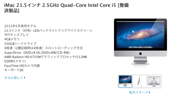 整備済製品 iMac 新しい iMac ですが、水曜日着って言ってたのに、今日届きましたwということで、早速新しいMacでブログを書いている訳ですが・・・。キーボード打ち辛いww↑今回購入したのは、こちらのiMacです。(※クリックで拡大)整備品なので、白い箱に入って届きました。整備品でも1年保証が付いてるのですが、保証書とかは入ってなかったですね。万が一修理に出す事になった場合は、代わりに購入した時のメールと領収書が必要みたいですね。そういえば会社で新品のiMacを買った時も、保証書付いてなかったから、最近は、紙で発行してないのかな??頑張ってセッティング。壁紙は気にしないでくださいwフリーのソフトや体験版ソフトとかインストールしましたが、今のところトラブルは無く順調です。(ほっまぁ、まだ一日目ですからね、わかりませんけど。外装的には、iMacの本体の上部にシルバーの塗装?が、剥げたような後が少しあったのと、キーボードに凄く小さいですが、傷がありましたが、普通に使う分には全然問題ないですね。ちなみにこれは、今まで使ってたeMacちゃんです。これが、これになった訳ですが、WEBサイトの表示がめちゃくちゃ早い!!www今までのイライラは何だったんだろう、ってくらい快適になりましたwということで、今まで表示されてた「ブラウザをアップグレードしろ」的な表示ともお別れだぜ!wそして我慢してた音楽もやっと聴けるし♪お金無くなってしまったけど(苦笑)その分、Macライフを楽しみたいと思います。 [0回]